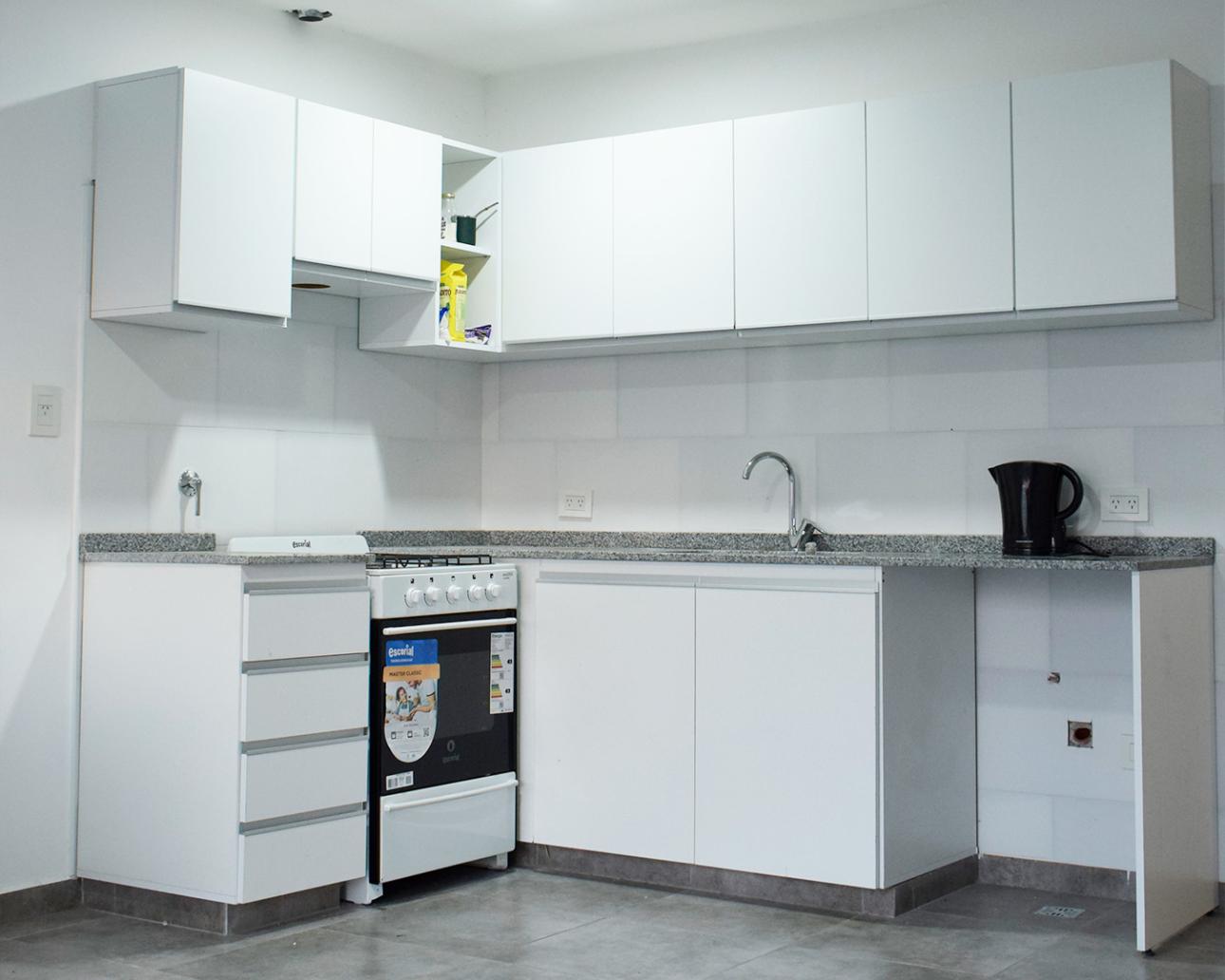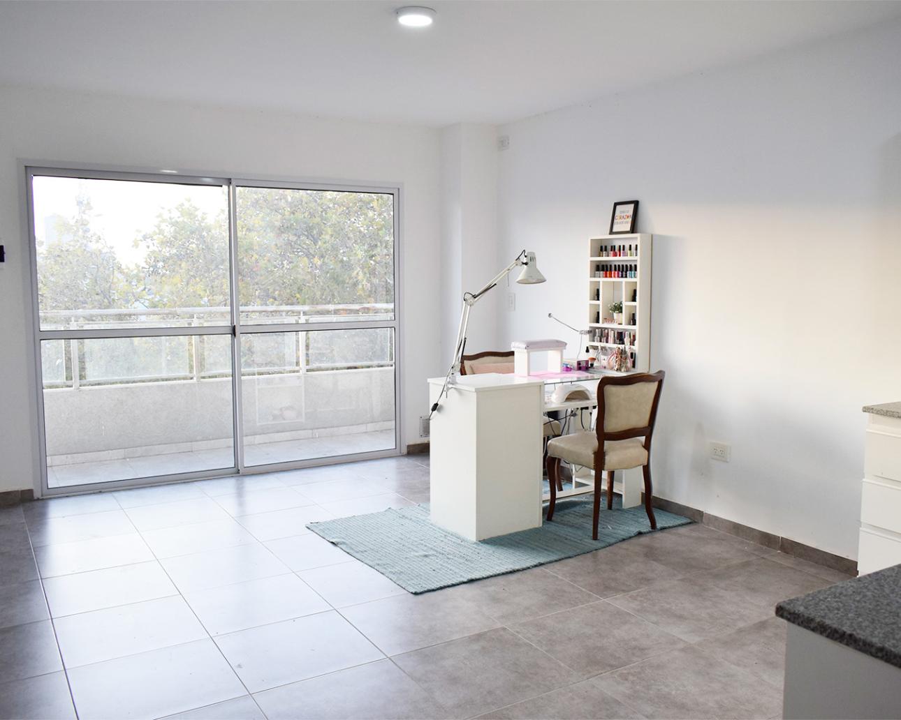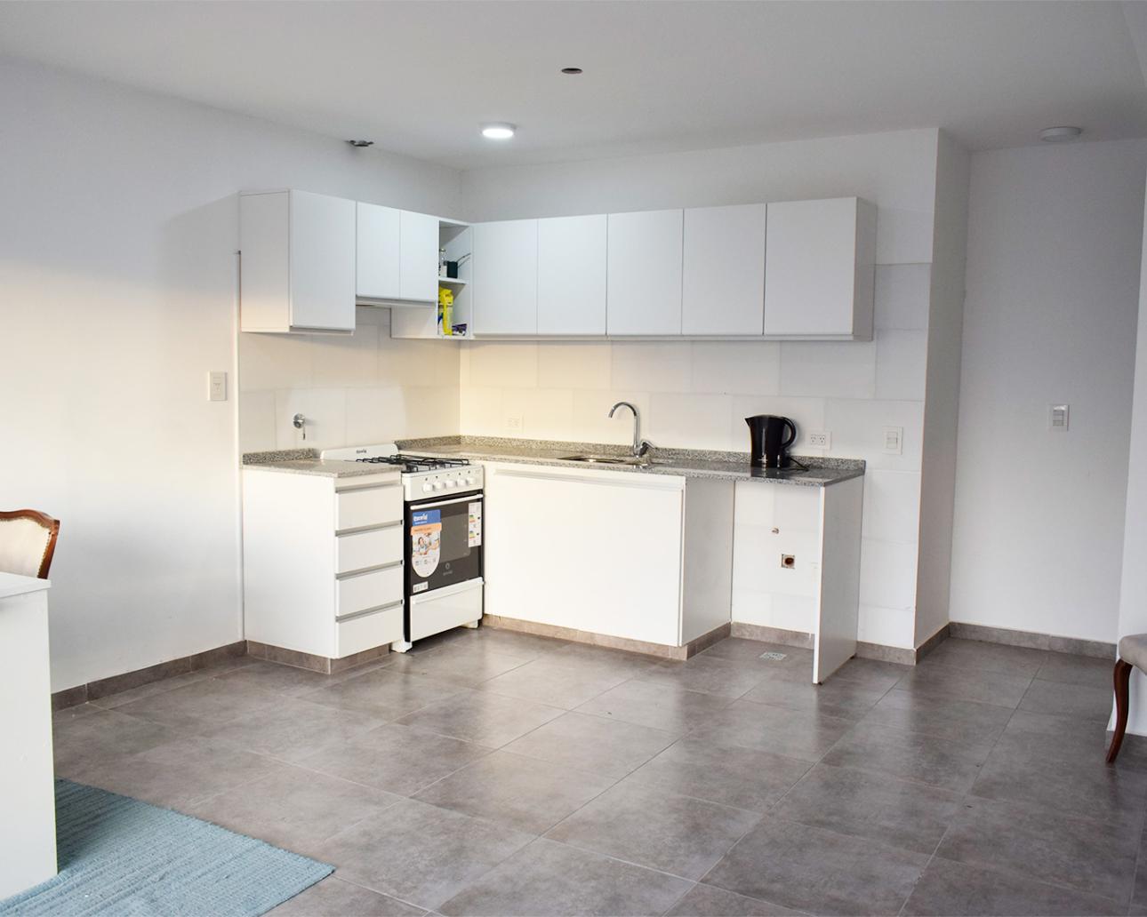 Al ingresar, te recibe un luminoso living-comedor con cocina integrada, moderna y totalmente equipada, que invita a disfrutar de un espacio práctico y acogedor.