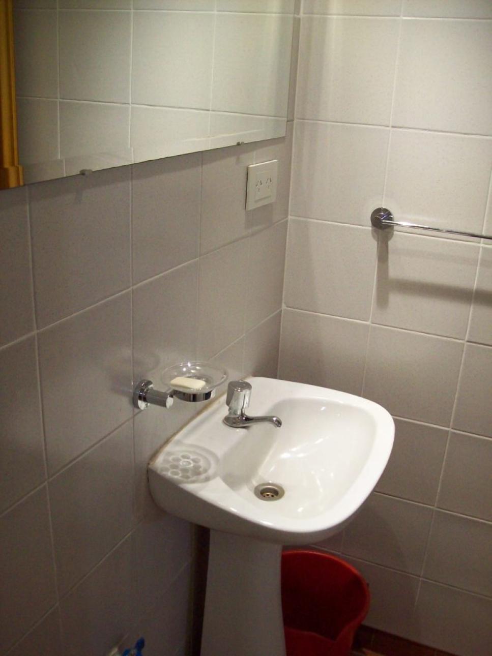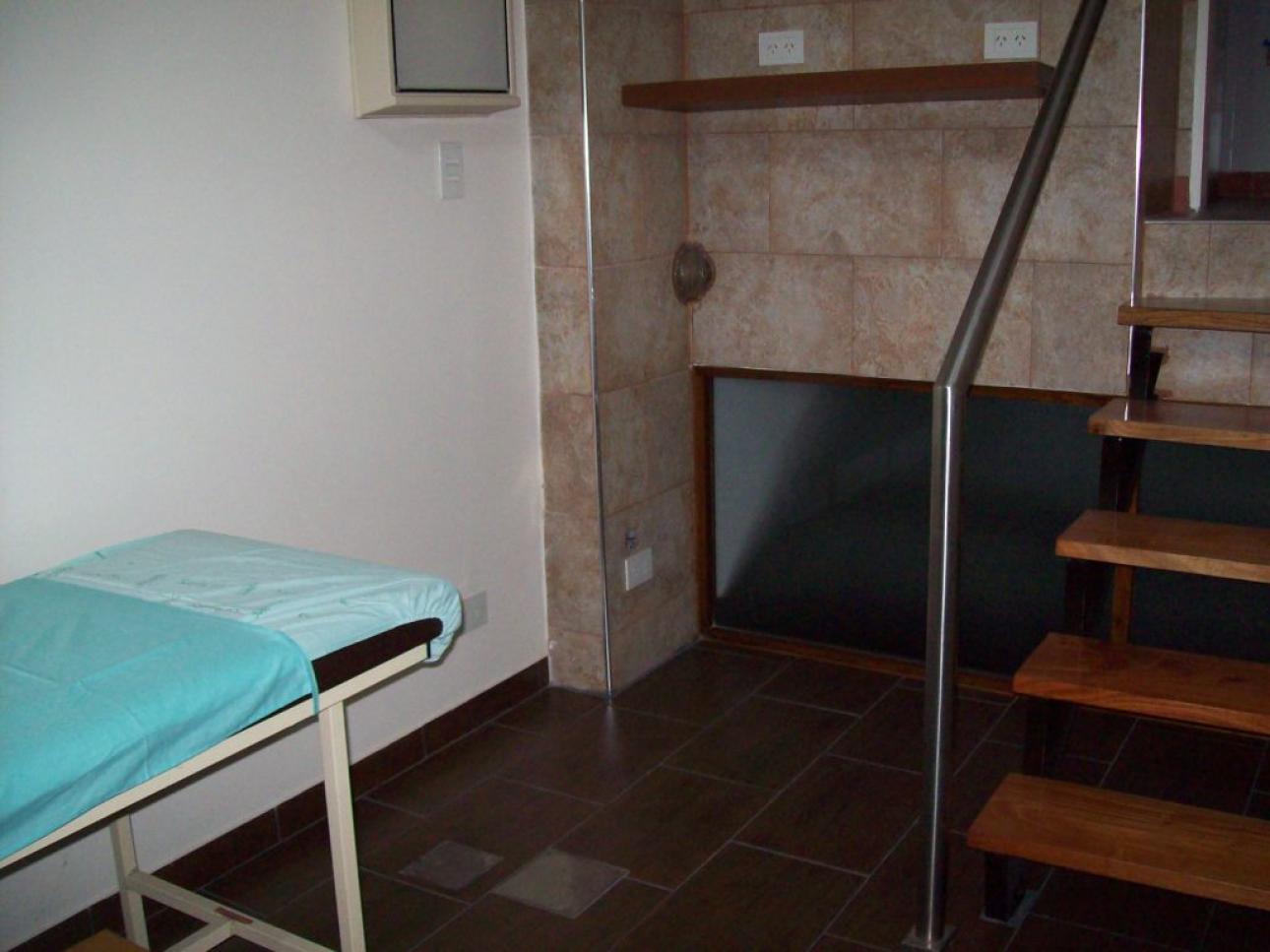 El baño se encuentra dentro del consultorio y se accede mediante 5 escalones.